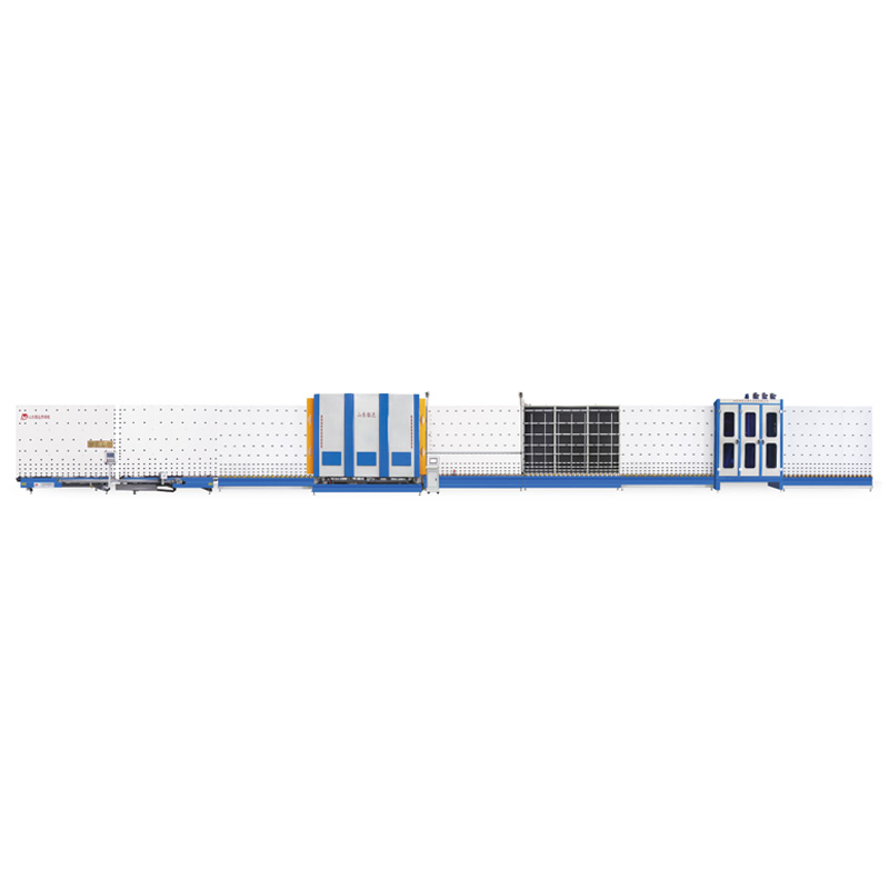 该生产线由高性能不锈钢清洗机、人工上框、板内外自动合片装置、自动平压装置、自动出料装置组成。改生产线能实现板内板外和片,充气时采用板内合片,板内合片可实现大小片、玻璃幕墙的生产。可根据用户要求进行升级和扩展。